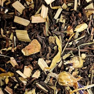 Pu-Erh con aroma naturale di pesca (pesca, farina di riso), calendula, vanilla bourbon