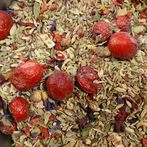 Tisana biologica con biancospino, vischio, frutti di bosco, bucce di fagioli, frutti di bosco, foglie di betulla, foglie di ortica, erba di san Giovanni, citronella (prodotto biologico certificato)