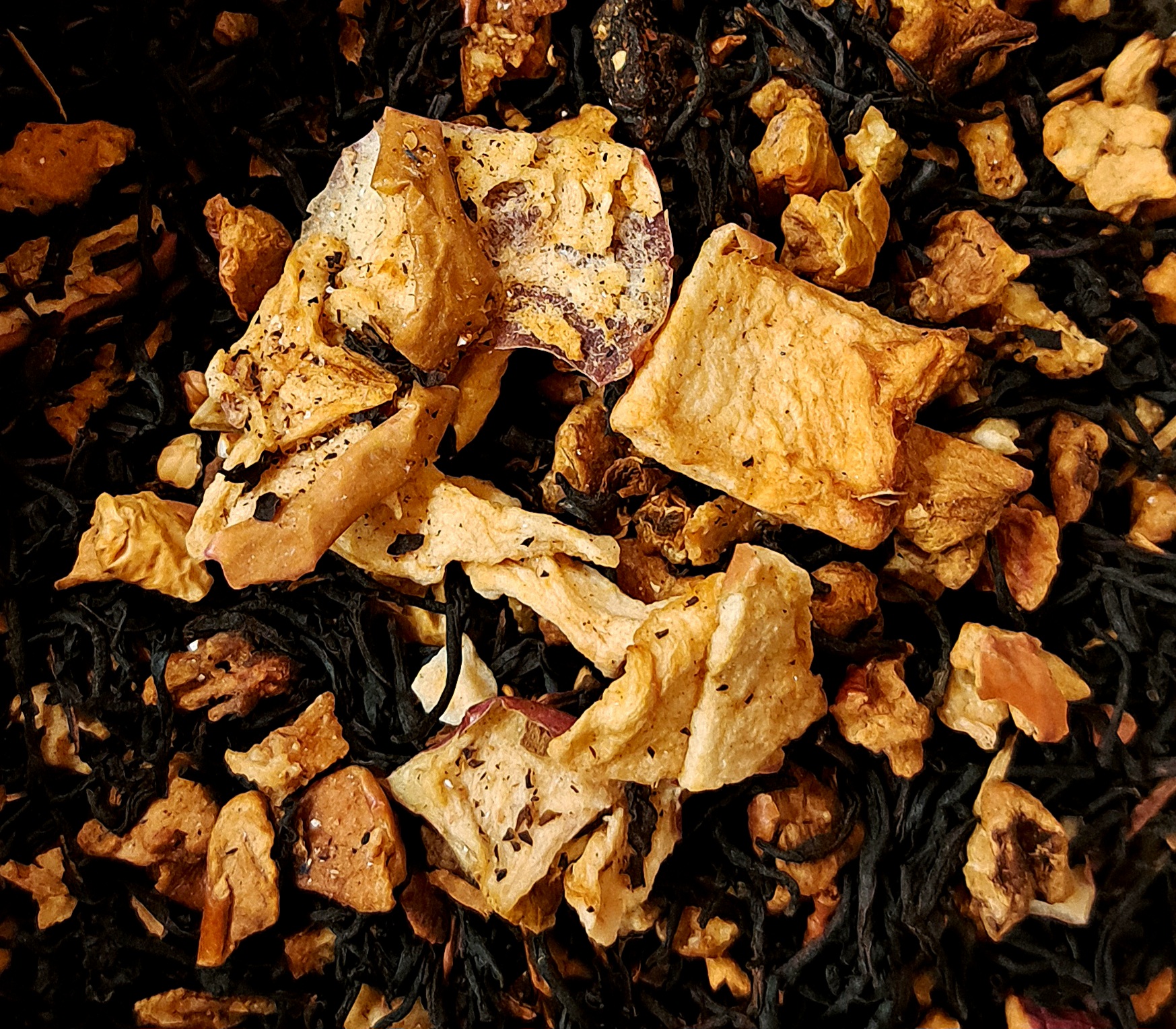 Tè nero Rukeri, mela verde, pera, cannella di Ceylon, grano saraceno tostato, radice di cicoria, vaniglia